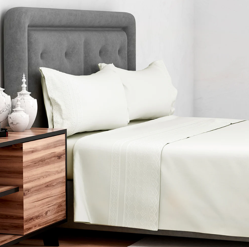 Este juego de sábanas broderie Doral Amalia romántico incluye una sábana superior de 160 x 245 cm, una sábana inferior ajustable de 105 x 200 cm y una funda de almohada de 50 x 75 cm. Su diseño delicado aporta un toque elegante y acogedor a tu dormitorio, mientras que sus medidas garantizan un ajuste cómodo para camas de 1.5 plazas. Ideal para quienes buscan combinar estilo y confort en su descanso diario.