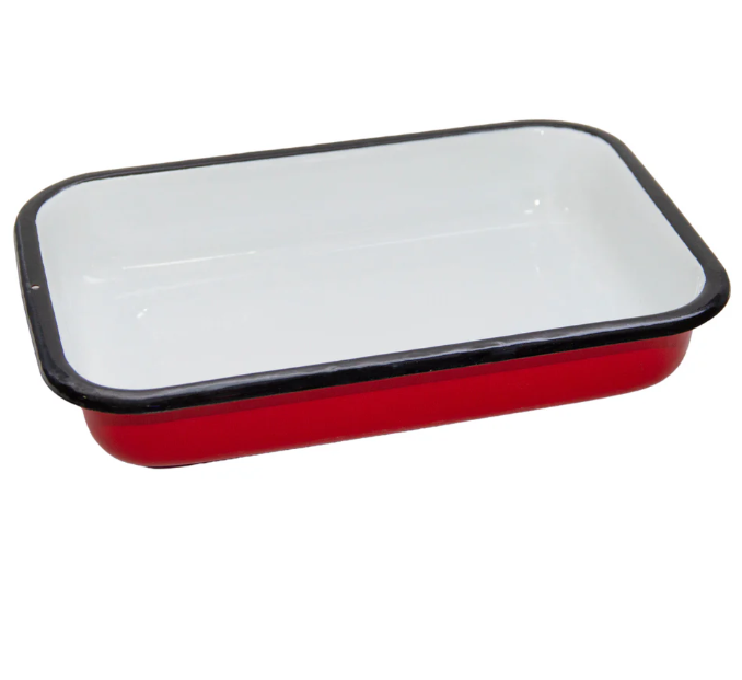 Asadera enlozada Condor roja 36x25cm es un utensilio ideal para cocinar y hornear en casa. Su recubrimiento esmaltado garantiza una distribución uniforme del calor para resultados perfectos en pasteles, asados y gratinados. Además, su diseño resistente facilita la limpieza y puede usarse directamente para servir, dando un toque rústico y elegante a tu mesa. Perfecta para carnes, aves, pescados y vegetales, combina funcionalidad y estilo en la cocina diaria.
