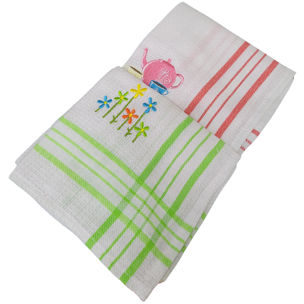 Estos paños garantizan absorción eficiente y durabilidad, ideales para mantener tu cocina limpia y ordenada con un toque elegante. Su tamaño práctico y diseño bordado aportan funcionalidad y estilo a tus tareas diarias en la cocina.