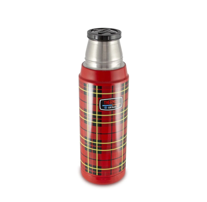 El termo líquido Thermos escocés de acero inoxidable de 1.2 litros cuenta con tecnología de aislamiento al vacío Thermos™ que mantiene la temperatura de tus bebidas por más tiempo. Su diseño incluye interior y exterior resistentes, un tapón giratorio que facilita el vertido sin necesidad de quitarlo completamente, y un exterior que se mantiene fresco al tacto y sin sudoración. Además, su tapa DrinkLock™ garantiza un cierre hermético para evitar fugas. Ideal para llevar en el auto, se ajusta a la mayoría de los portavasos.