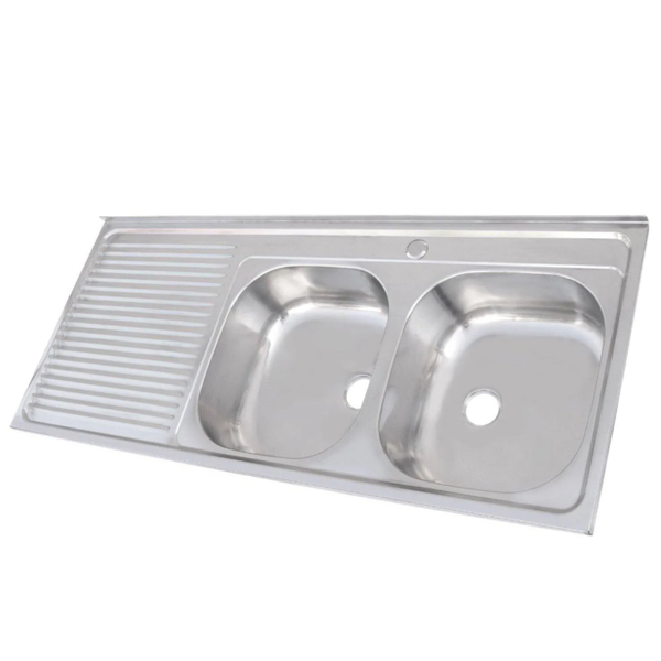 El lavaplato empotrable Cóndor izquierdo de una monomando y dos cubetas ofrece funcionalidad y eficiencia en espacios compactos. Su diseño práctico facilita el lavado y secado de vajilla, mientras que la estructura de acero garantiza durabilidad. Ideal para cocinas que requieren soluciones integradas y resistentes.