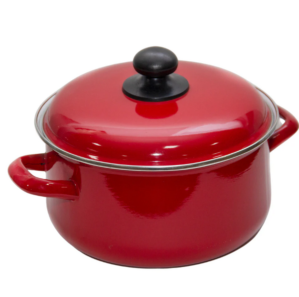 Cacerola enlozada de 20 cm y capacidad de 2.2 litros, fabricada con esmalte de alta calidad en un vibrante tono rojo que aporta elegancia a tu cocina. Su diseño robusto garantiza una distribución uniforme y excelente retención del calor para una cocción óptima. Equipada con mangos ergonómicos que ofrecen un agarre seguro y cómodo, facilita la preparación y el servicio. Ideal para cocinar sopas, guisos, arroces, pastas, y para freír, dorar o saltear alimentos con resultados sabrosos y consistentes. Perfecta para platos familiares y de cocción lenta.