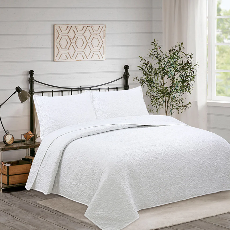 Decora tu dormitorio con la colcha quilt Doral Elegance bordada, confeccionada en 100% poliéster para mayor durabilidad y fácil cuidado. Incluye una funda de 50 x 70 cm y se presenta en una práctica bolsa de tela para almacenaje o transporte. Su diseño bordado y textura suave brindan calidez y un toque de distinción a tus espacios, ideal para camas de 1.5 plazas (180 x 250 cm). Combina estilo y funcionalidad para transformar tu habitación con elegancia.