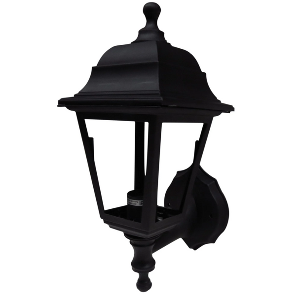 Esta lámpara farol mural combina un diseño clásico con funcionalidad moderna. Con capacidad para una ampolleta E27 de hasta 40W (no incluida), se conecta a un voltaje de 220V y está fabricada en material sintético resistente. Ideal para iluminar paredes con una luz regulada hacia arriba y hacia abajo, creando ambientes acogedores y elegantes en exteriores o interiores. Su acabado negro aporta un toque sofisticado y se adapta fácilmente a diferentes estilos decorativos.