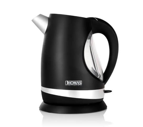 Con una potencia de 2200 Watts, el hervidor eléctrico Thomas TH-4515N ofrece una capacidad de 2 litros ideal para preparar agua rápidamente. Su base interior de acero inoxidable y base desmontable con giro de 360° garantizan durabilidad y comodidad en su uso. Incluye luz LED azul que indica su funcionamiento y un indicador de nivel para facilitar el llenado. Cuenta con un filtro para evitar impurezas, asegurando agua más limpia. Sus dimensiones compactas y garantía de 2 años lo convierten en una opción confiable para quienes buscan eficiencia y calidad.