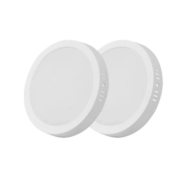 Panel LED de superficie BYP redondo, modelo LzFr18W, con luz fría de 6500K y un diámetro de 19 cm. Ideal para iluminar espacios con eficiencia y bajo consumo energético. Su diseño compacto y moderno facilita su instalación en techos, proporcionando una luz uniforme y brillante para ambientes domésticos o comerciales. Viene en presentación de 2 unidades.