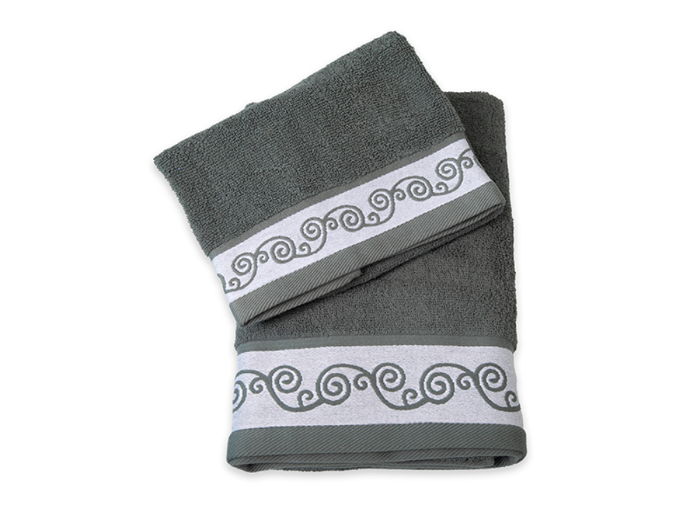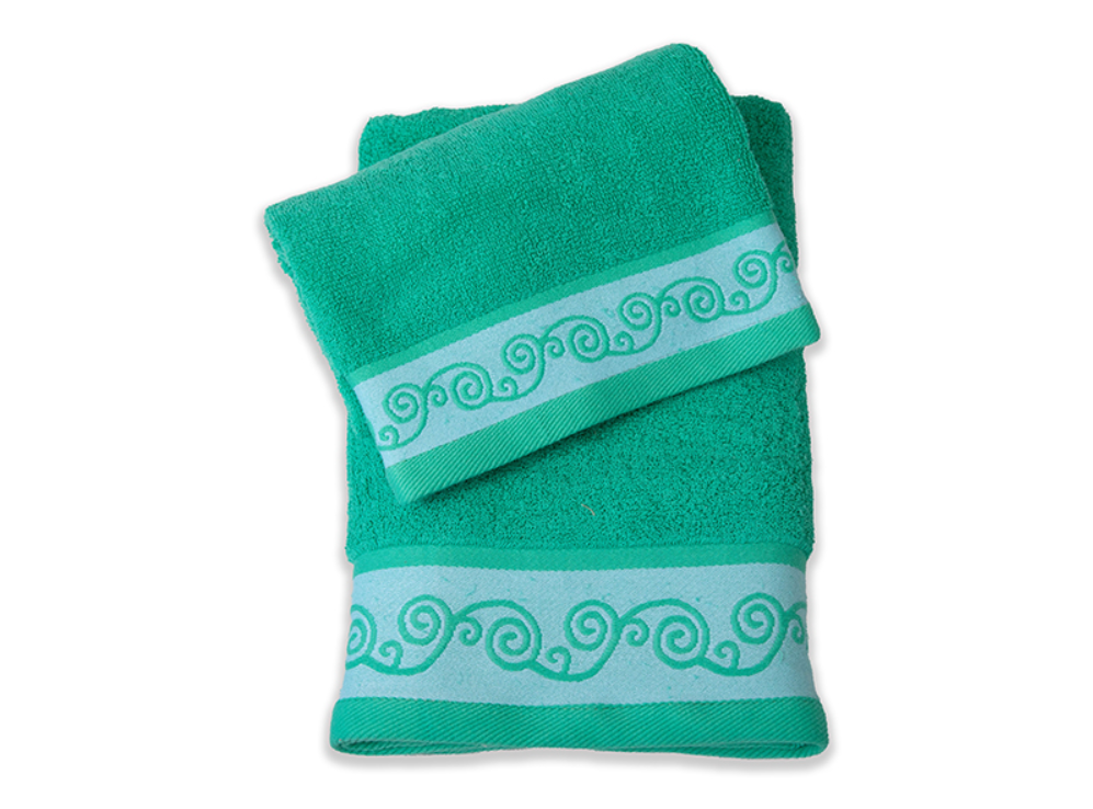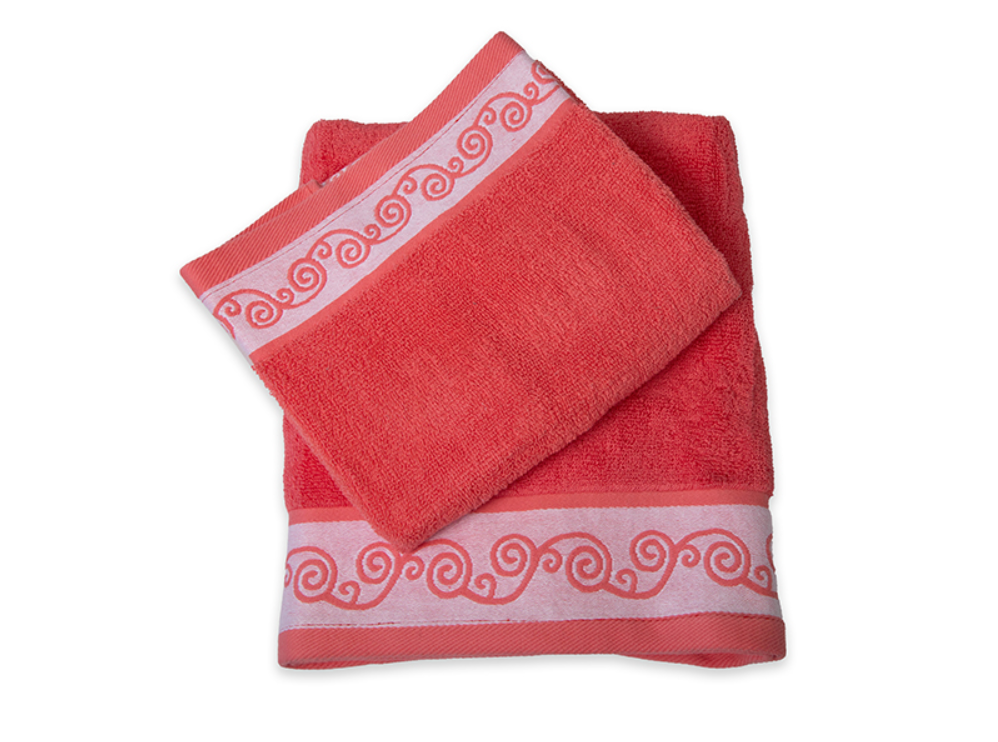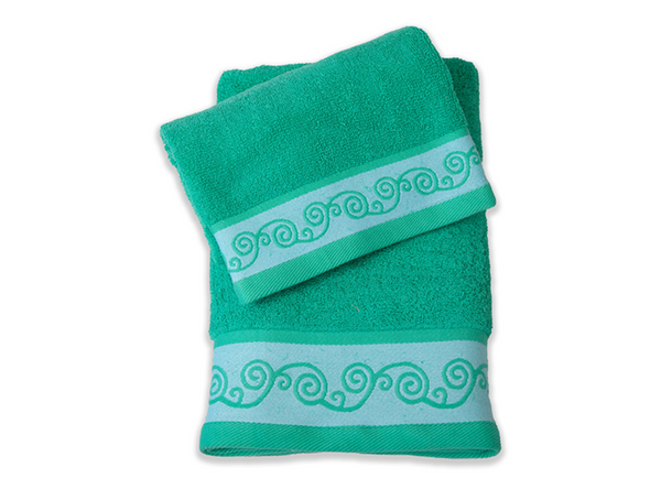 Este set incluye dos toallas de algodón de alta calidad: una toalla de mano de 45 x 90 cm y una toalla de baño de 70 x 140 cm. Ambas cuentan con un borde jacquard que aporta un acabado elegante y duradero, ideal para complementar cualquier baño con estilo y confort.