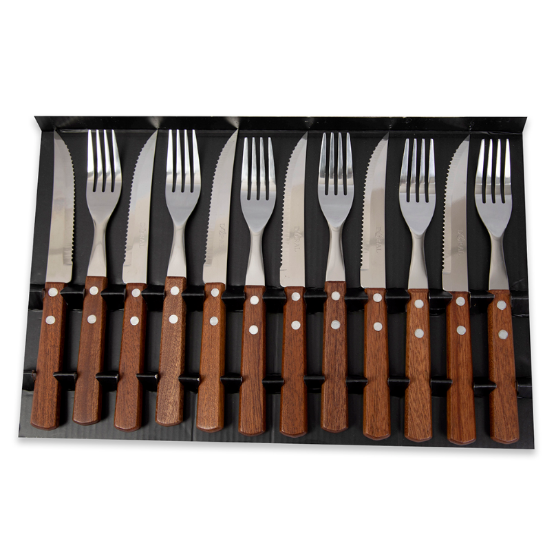 - Cubierto mesa Doral linea brasas Mgo/mdra set 12Pz