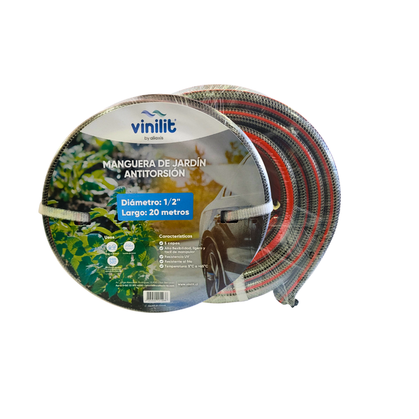 La manguera anti torsión Vinilit de 1/2" en rollo de 20 metros está diseñada para evitar el enroscamiento durante su uso, facilitando el riego o traslado de líquidos sin interrupciones. Su resistente material garantiza durabilidad y flexibilidad, ofreciendo una solución práctica y eficiente para tus necesidades. Ideal para uso doméstico y profesional donde se requiera evitar enredos y asegurar un flujo constante.