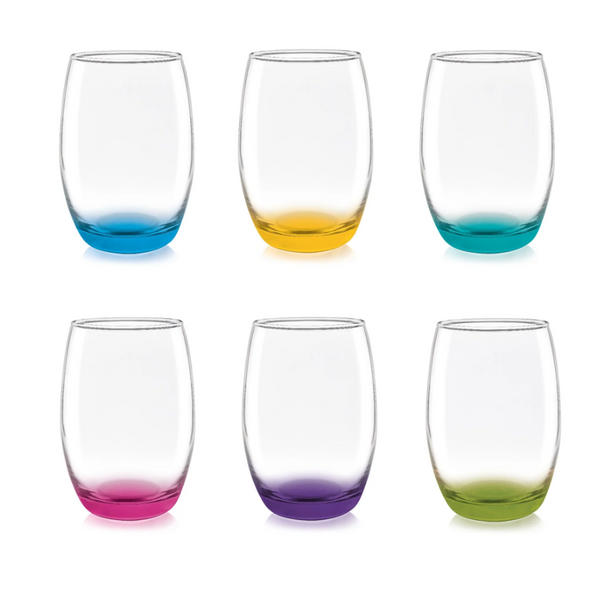 Set de 6 vasos Mikonos de la marca Cristal, con capacidad de 460 cc y fondos de colores vibrantes que aportan un toque divertido a cualquier ocasión. Con 12 cm de alto y 7 cm de diámetro, son perfectos para tus bebidas veraniegas, reuniones familiares o momentos de relax en casa. Requieren lavado a mano con agua fría, no aptos para lavavajillas. Ideal para disfrutar tus preparaciones favoritas con estilo y frescura.