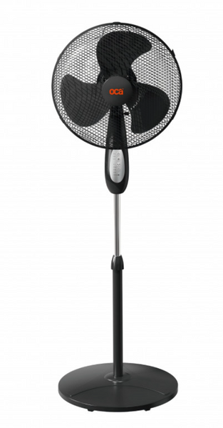 Ventilador pedestal de 16" con motor de 50W y diseño elegante en negro. Incluye control remoto inalámbrico para ajustar velocidad y oscilación sin moverte del lugar. Perfecto para refrescar espacios amplios con eficiencia energética. Base estable y estructura resistente que se adapta a cualquier ambiente del hogar u oficina.