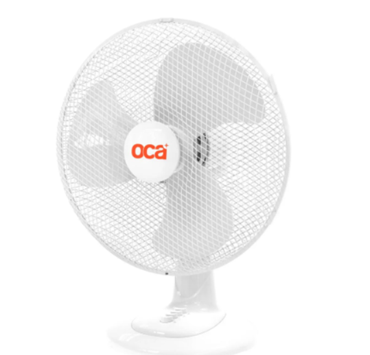 Ventilador de sobremesa con diseño moderno en blanco que se adapta a cualquier espacio. Cuenta con 3 velocidades ajustables para controlar el flujo de aire según tus necesidades, motor de 50W y pantalla de 16 pulgadas. Funciona con voltaje estándar 220V. Ideal para refrescar tu escritorio, sala o dormitorio durante los días cálidos. Construcción resistente y operación silenciosa para mayor comodidad.