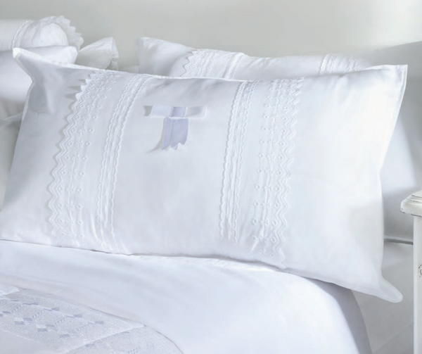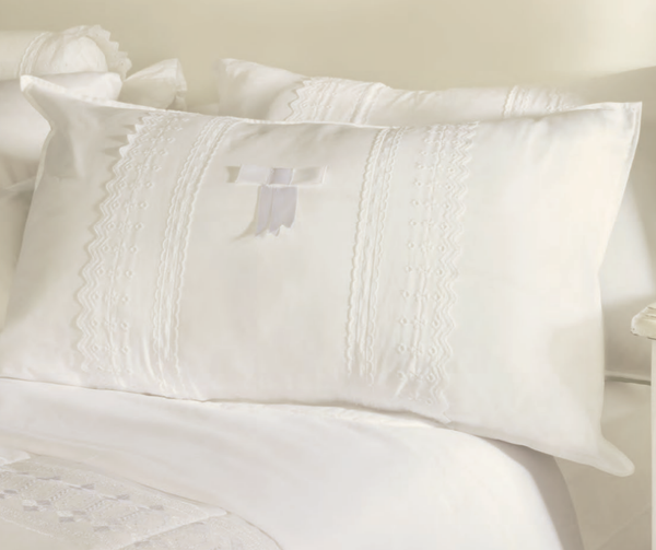 Juego de 2 fundas de almohada con delicado bordado y acabado deshilado, que aportan un toque romántico a cualquier dormitorio. Con tratamiento antipilling para mantener su aspecto suave y evitar bolitas con el uso. Compuestas por una mezcla equilibrada de 50% algodón y 50% poliéster, combinando comodidad y durabilidad.