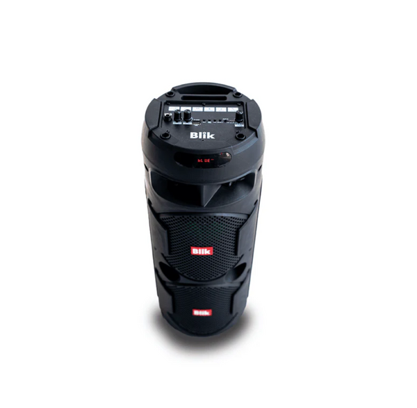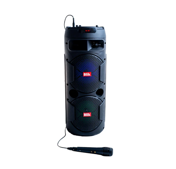 Parlante portátil de alta potencia con 3000W PMPO ideal para fiestas y eventos. Cuenta con 2 parlantes de 6,5" que entregan una experiencia de sonido estéreo envolvente. Batería de hasta 4 horas de duración y carga rápida en 6 horas. Conectividad Bluetooth 5.2, radio FM, entrada USB, TF y AUX. Incluye micrófono alámbrico para karaoke, control remoto y luces RGB dinámicas. Compacto y transportable: 20 x 20 x 58 cm, pesa solo 2,9 kg. Compatible con cualquier dispositivo Bluetooth.