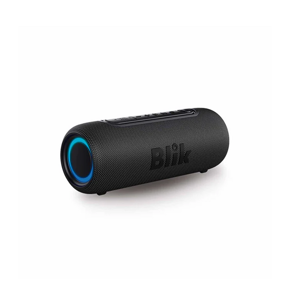 Parlante portátil Blik Bluetooth Live con potencia de 10W RMS que te acompaña hasta 8 horas de reproducción continua. Resistente al agua IPX5, ideal para cualquier ambiente. Disfruta de sonido estéreo inmersivo con tecnología TWS y conectividad Bluetooth 5.3 compatible con todos tus dispositivos. Incluye luces RGB, micrófono integrado para llamadas y múltiples modos de conexión: USB, Bluetooth y AUX. Batería de 3.000 mAh recargable en 4 horas mediante USB tipo C. Dimensiones: 24 x 9 x 9 cm. Peso: 800 gr.