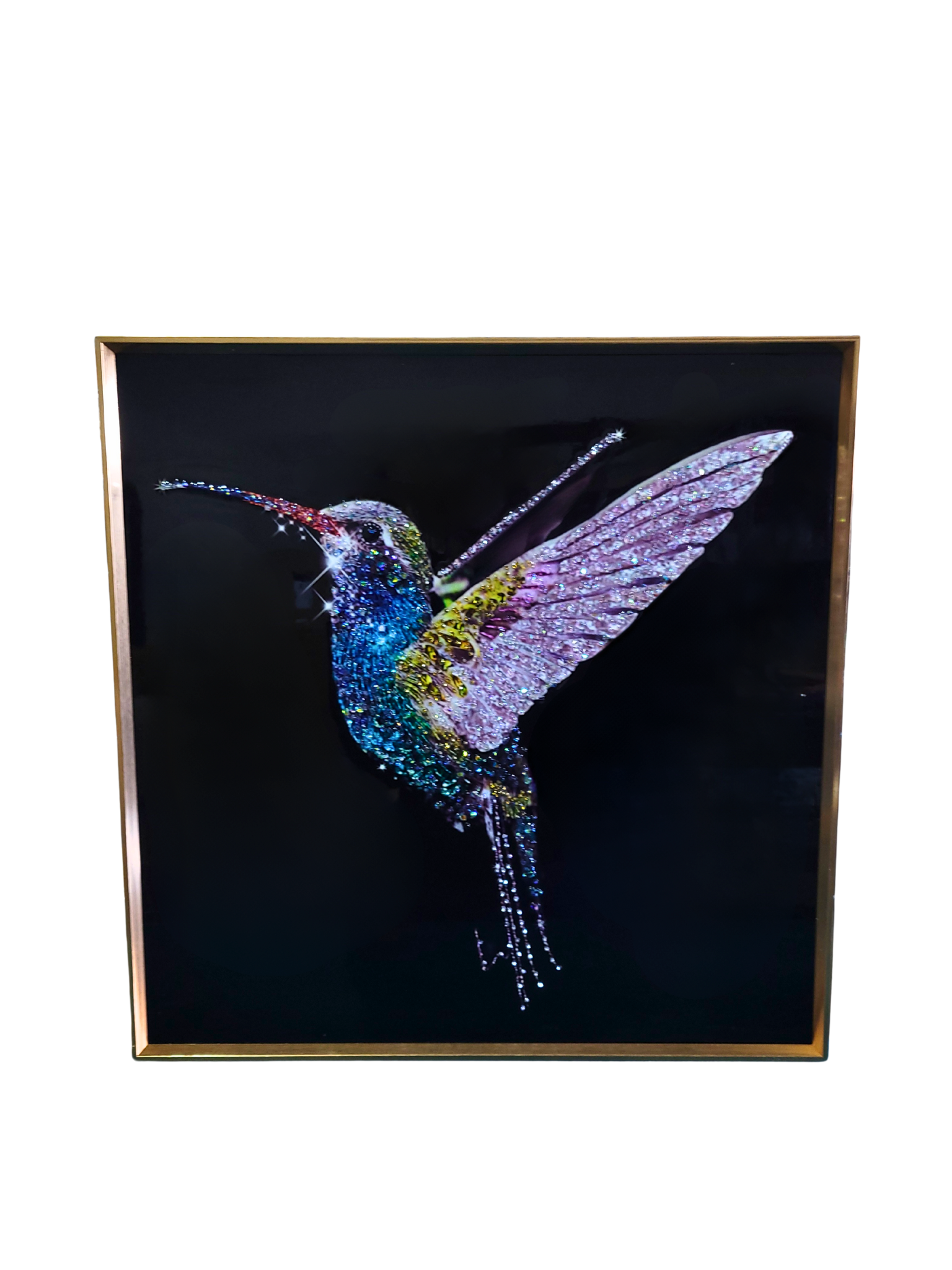 Este cuadro decorativo de 60x60 cm combina un diseño delicado de colibrí con detalles en piedritas que aportan textura y brillo sutil. Ideal para darle un toque natural y elegante a cualquier ambiente, su tamaño versátil facilita su integración en salas, dormitorios o espacios de trabajo. Una pieza que realza la decoración con un estilo fresco y armonioso.