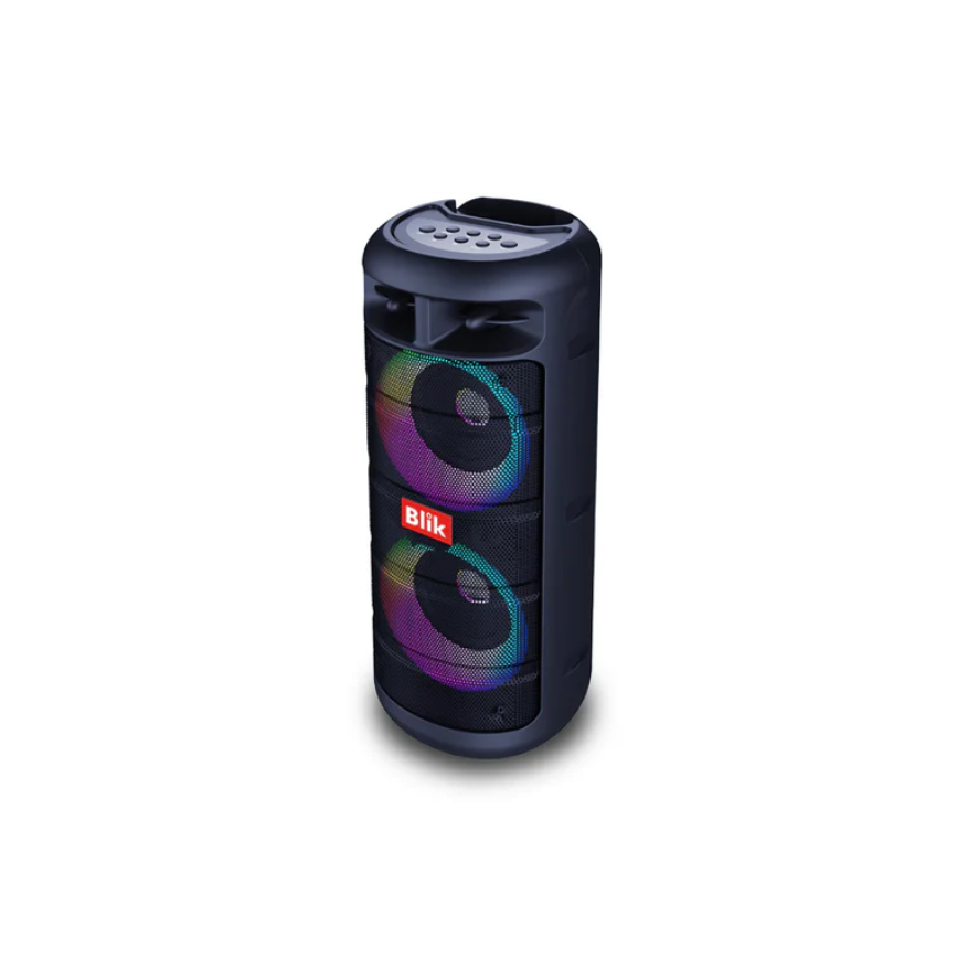 Parlante portátil de 2000W PMPO con doble driver de 4" que entrega un sonido estéreo inmersivo. Equipado con Bluetooth 5.3, radio FM y luces RGB dinámicas para crear el ambiente perfecto. Incluye micrófono alámbrico para...
