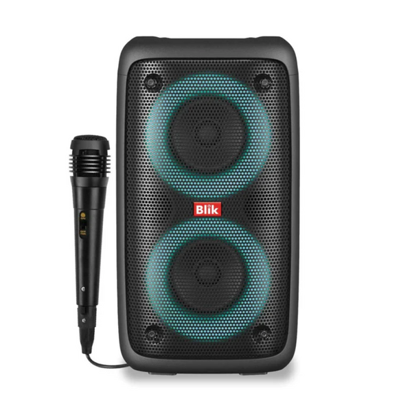 Parlante karaoke con potencia de 10W RMS y Bluetooth 5.3 para conectividad inalámbrica de hasta 10 metros. Disfruta de hasta 6 horas de reproducción continua con batería de 2400mAh. Incluye luces RGB dinámicas que se...
