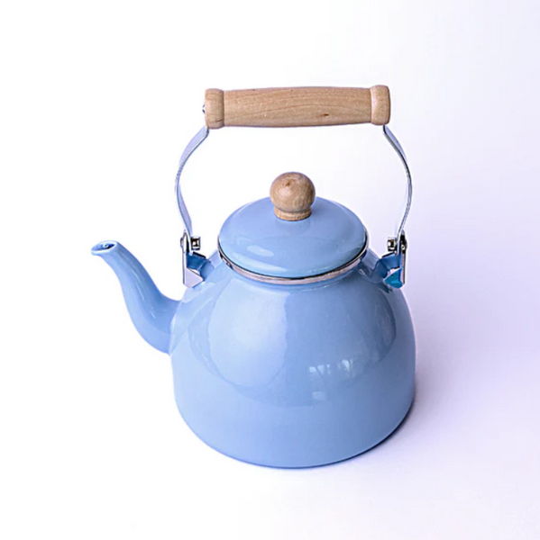 La Tetera Bolton Enlozada Celeste con Asa de Madera de 2 litros combina un diseño atractivo y funcionalidad. Su revestimiento enlozado preserva el sabor original del agua, mientras que el asa de madera ofrece un agarre cómodo y seguro. Perfecta para preparar varias tazas de té o infusión, es ideal para uso en cocina o directamente sobre la llama.